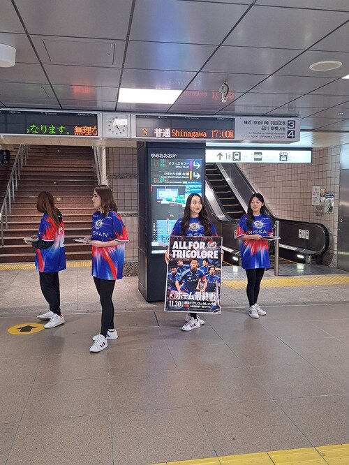 11月24日(月・祝)~11月29日(土)の期間、横浜市内の各駅にて試合告知チラシを配布。クラブスタッフ、サポートスタッフ、トリコロールマーメイズに加え、"スペシャルゲスト"も参加予定。